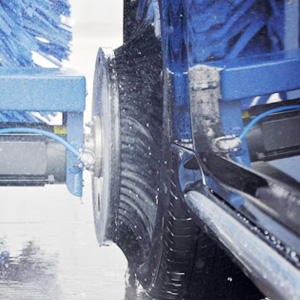 進口意大利塑玻絲輪刷,根據光電開關感應判斷車身位置,輪刷啟動至輪轂位置,開始清洗,正反旋轉刷洗輪轂,電腦洗車機全程電腦全自動控制輪刷伸縮。